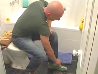 Guy Enjoys Jerking Off While Setting On Chain