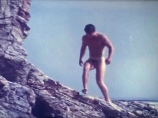 Beautiful vintage boy wanders the beach in the nude