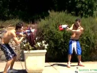 These 2 sexy guys enjoy some hot sun bath around the pool!