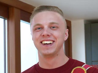Ultra Sporty Straight Pup Jamie Shows off His Curly Blond Hole Hair