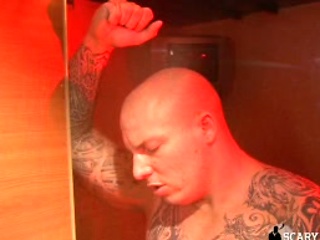 Chris Hacker is fishing some mouth trough the glory hole!